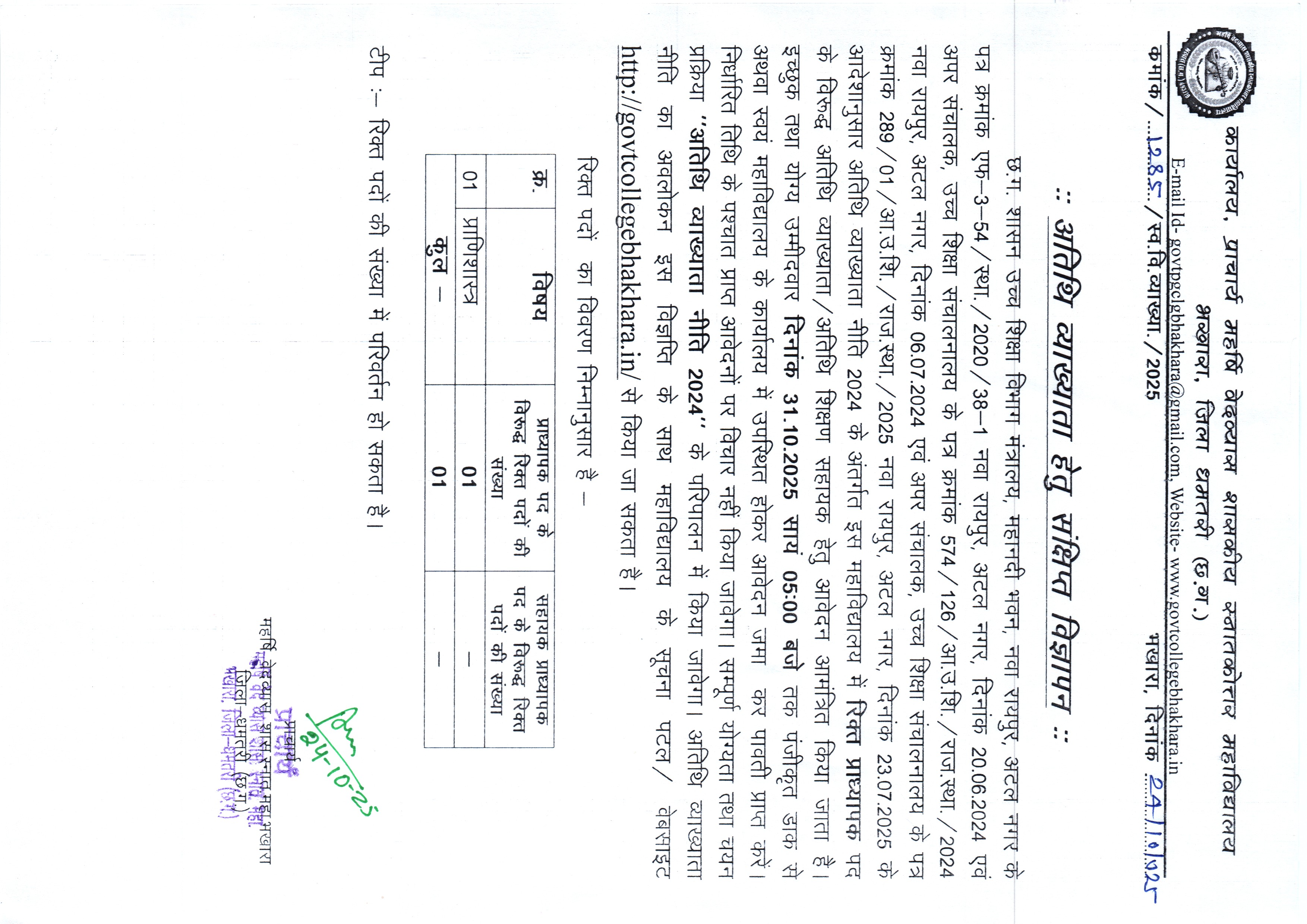 AUG 21 2025 दावा आपत्ति निराकरण उपरांत तिथि व्याख्याता / अतिथि शिक्षण सहायक गणित की अनंतिम मेरिट सूची